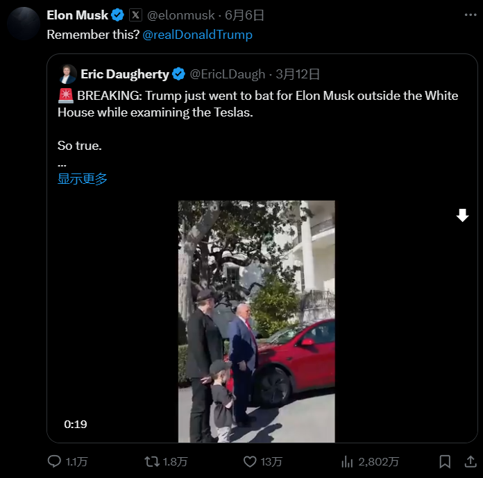 隨後特朗普稱:滿腦子都是全球大事件,沒空搭理馬斯克,並稱只是希望他一切順利,隨後馬斯克回覆稱“一樣”,彼此嫌棄之情可謂是溢於言表。