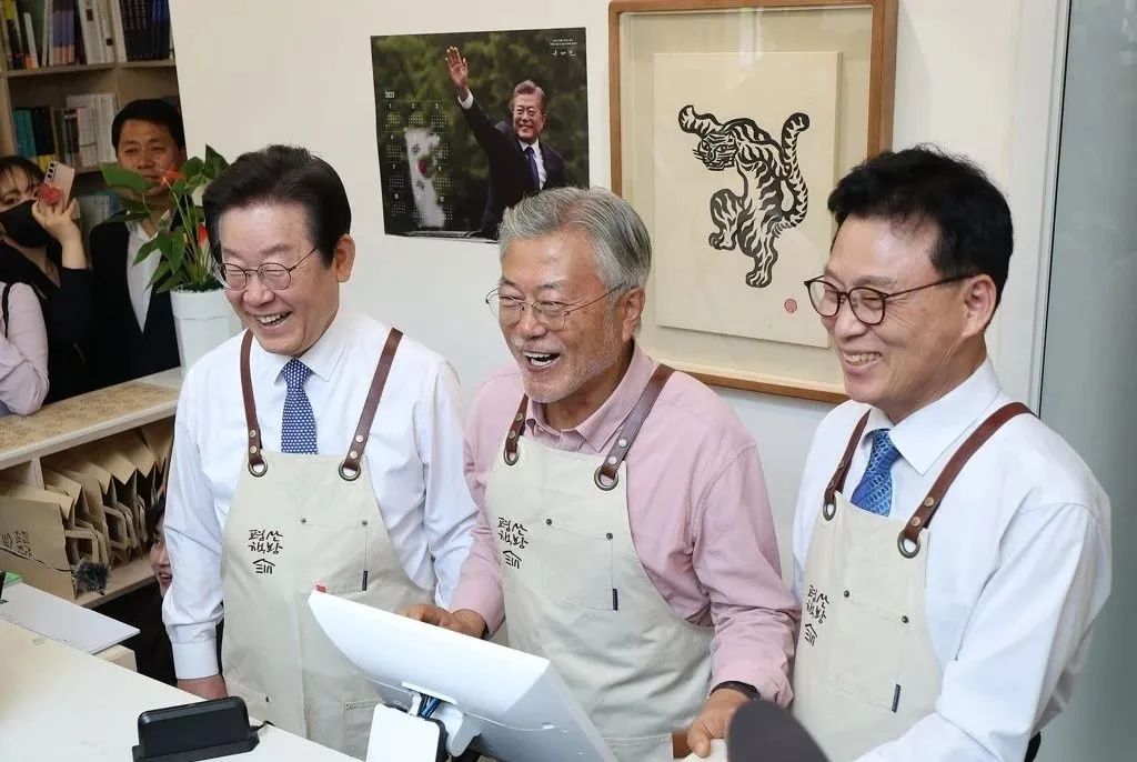 現任韓國總統李在明在前任文在寅的書店