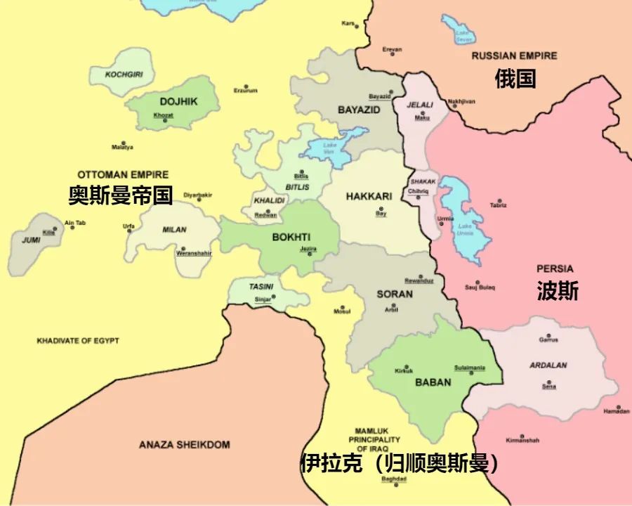 ▲庫爾德人的獨立王國與自治公國,約1835年