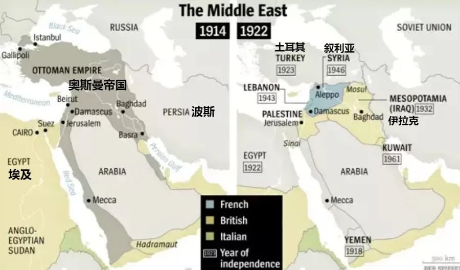 ▲1914和1922年對比,奧斯曼解體前後的疆域變化