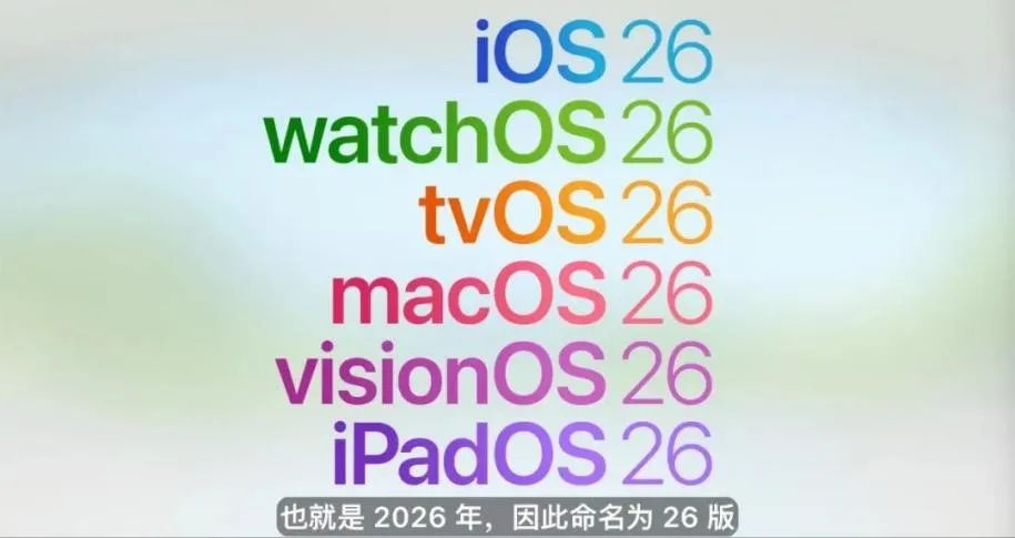 在Apple Intelligence和Liquid Glass兩項更新之後,蘋果還宣佈了一個具有象徵意義的變化:平台版本命名方式將全面統一。從今年起,所有操作系統將採用相同版本號“26”,包括iOS 26、iPadOS 26、watchOS 26、tvOS 26、macOS 26和visionOS 26。