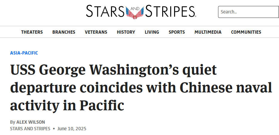 或許有人會覺得是筆者故意渲染“華盛頓”號的倉促出行,但事實是具備美國軍方背景的《星條旗報》在報道中直言,該航母出航時正值中國航母遼寧艦罕見地突破第二島鏈、逼近關島,該報記者還專門就此詢問美國海軍第七艦隊發言人,結果對方給出的答覆是意味深長的“不予置評”。