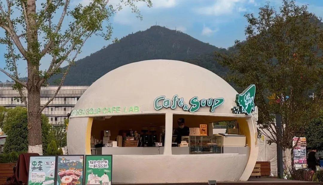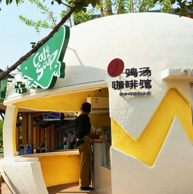 據瞭解,這間雞湯咖啡館位於南京玄武湖畔附近的大型商業綜合體——金陵style,於今年5月初推出。該店以蛋殼裝置的獨特造型示人,門口位置有明顯的“老鄉雞特別企劃”標識。