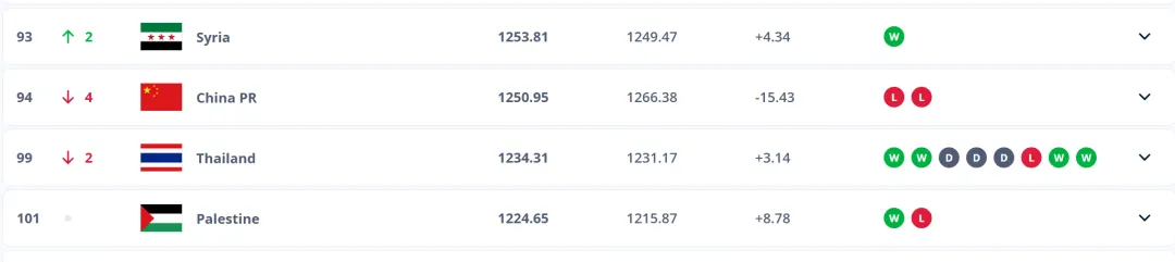 但現在,王鈺棟和土庫曼斯坦將國足又撈了上來。戰勝巴林後,國足獲得13.57個技術積分,總技術積分上升到1249.46分,排名也回升至94位,而泰國在1比3輸給排名比自己低的土庫曼斯坦(第142名),連亞洲盃都快踢不上了,至少這個統計週期不會再對國足構成威脅了。