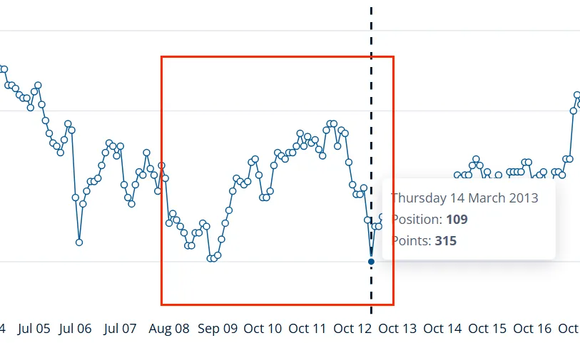 即便如此,國足在2011年好歹還有17場A級比賽,但由於在世預賽第三階段小組賽就早早出局,中國足協於是在2012年主打一個糊弄,只踢了7場A級比賽,還只贏了2場。比賽少外加戰績不好,這麼糊弄來糊弄去,就給自己糊弄出個歷史最低排名。
