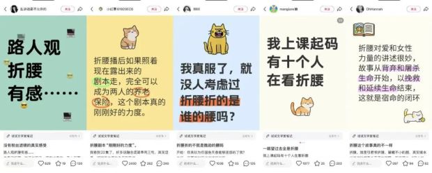 但《折腰》在小紅書的repo,重新讓人看到了“羣眾的聲音”。沒粉籍、不審判,從觀劇中來,到生活中去,就圖個純粹的追劇眾樂樂。