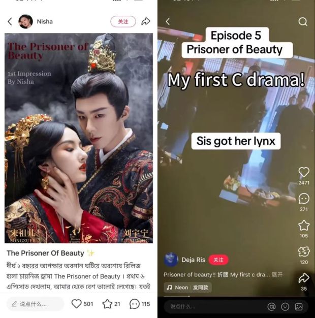 上線快一個月了,《折腰》的長尾還在繼續,小紅書上“折學家”還在整活。隨着《折腰》在海外平台的陸續播出,小紅書又興起了海外用户repo熱。**《折腰》圓房親熱戲repo火到了國外,沒想到外國網友也好這口。**兩人極致拉扯的親熱戲,引發了國內外網友反覆拉片。