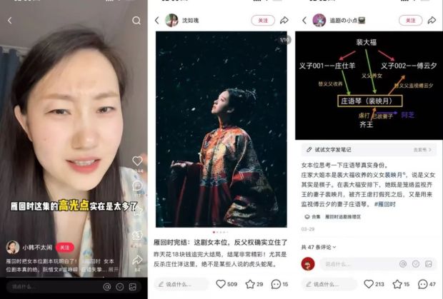 除了隨手筆記式repo,小紅書的repo也有深刻的觀點輸出。《雁回時》女本位先鋒觀點通過小紅書不同圈層用户的廣泛repo得到了迴響,吸引了更多路人觀眾進場。