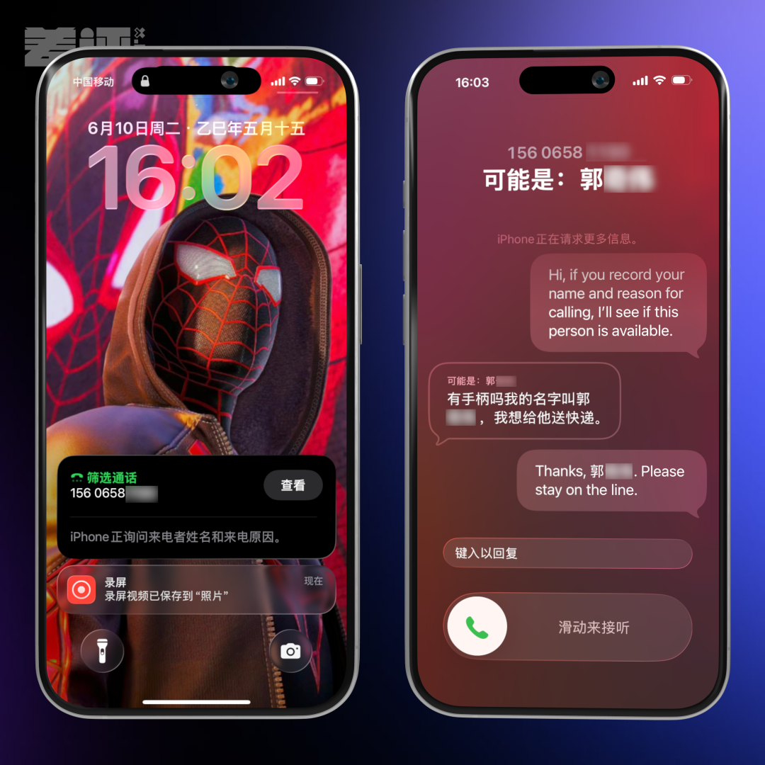 等對方回答完後,你的鈴聲才會響起來,這時系統會把剛才那個人的回答轉成文字,你可以看完再決定要不要接起來。