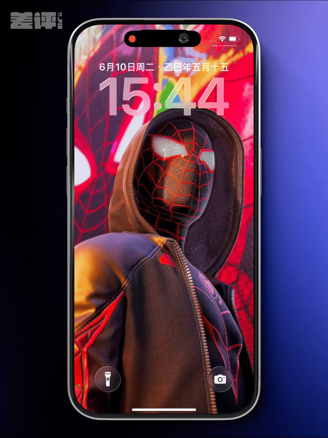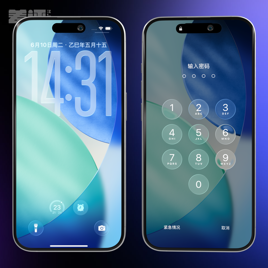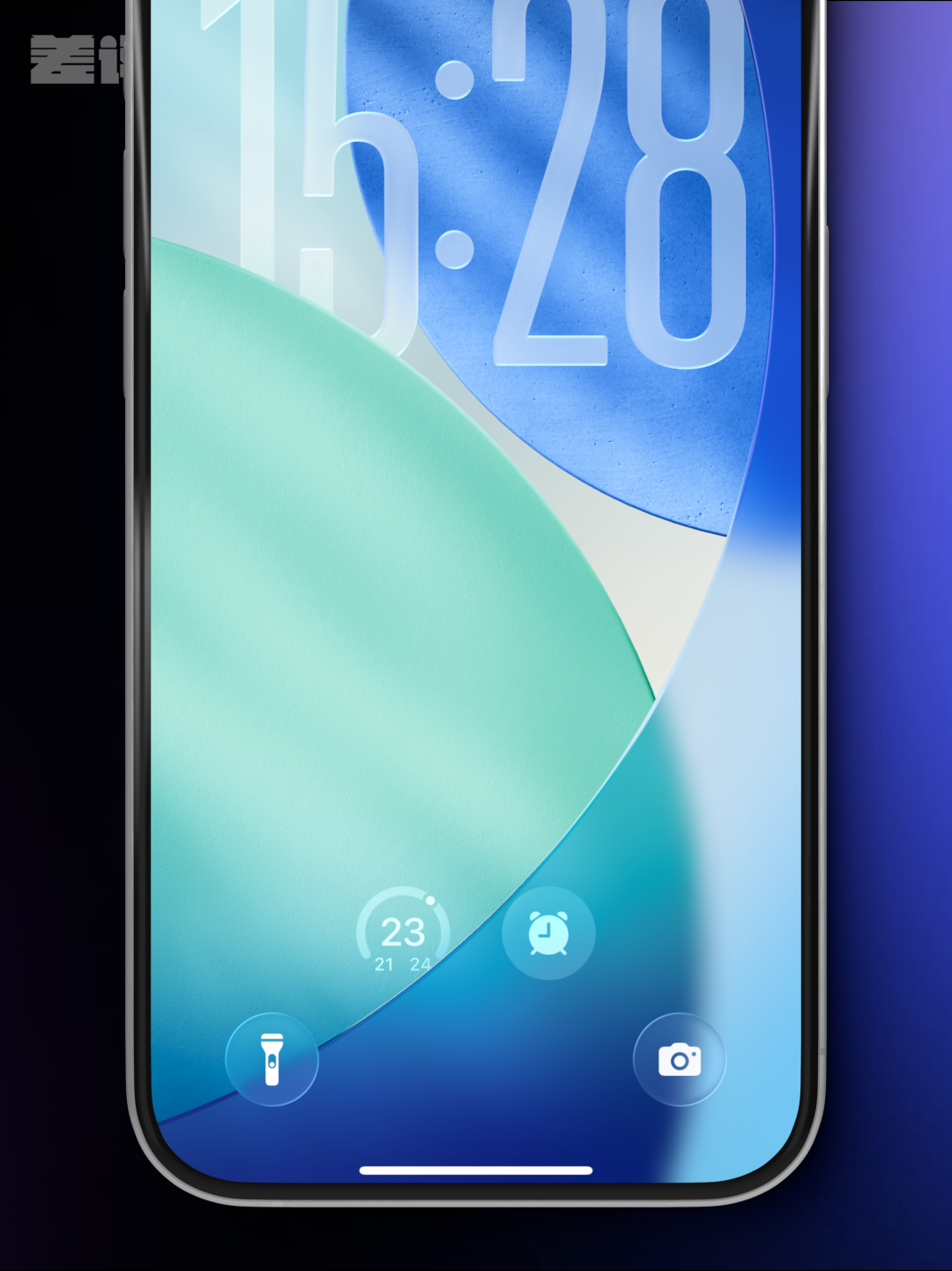另外,鎖屏頁面也有所調整,現在時間顯示可以拉得巨長,小組件也被移到了下方,可能是為了更好地展示壁紙。
