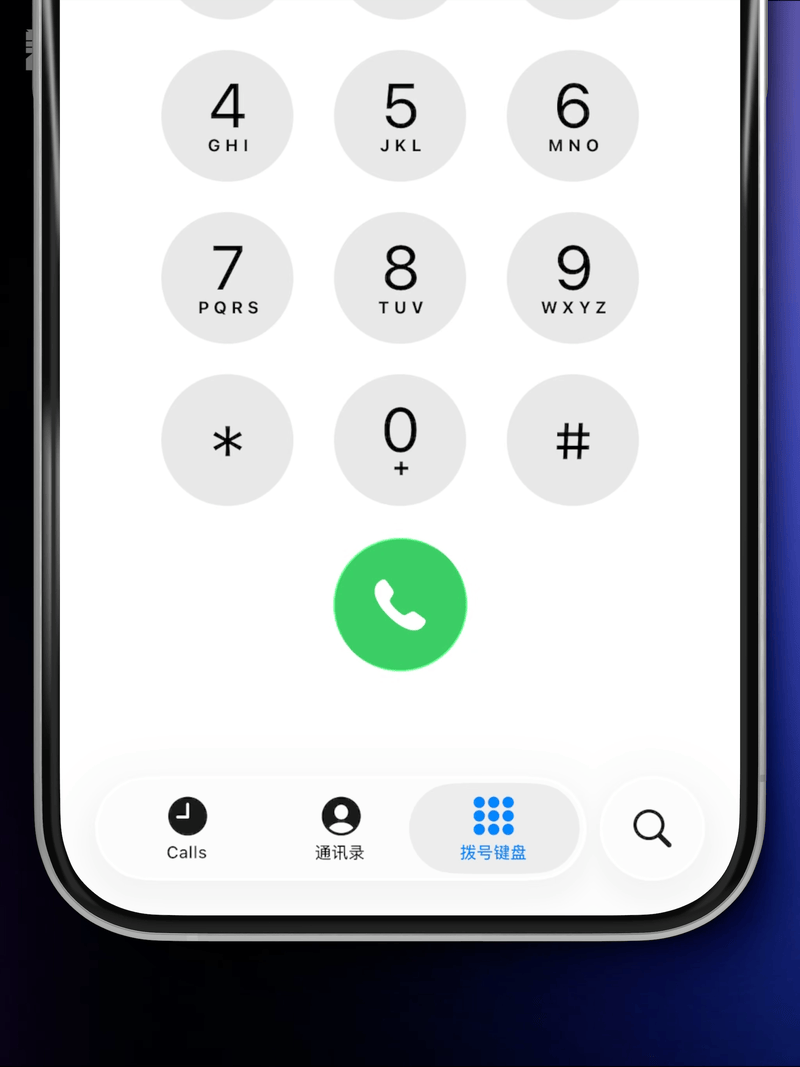 就連在電話裏按住底部 Tab 滑動,也都會即時產生玻璃效果。。。