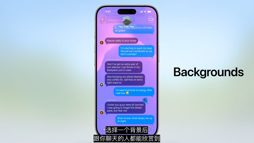 不過這還不是最難崩的,説出來你可能不信,咱們天天用的微信羣收款、投票和自定義聊天背景等功能,終於在 2025 年被曾經全球市值第一的科技公司給做到 iMessage 裏面了。。。