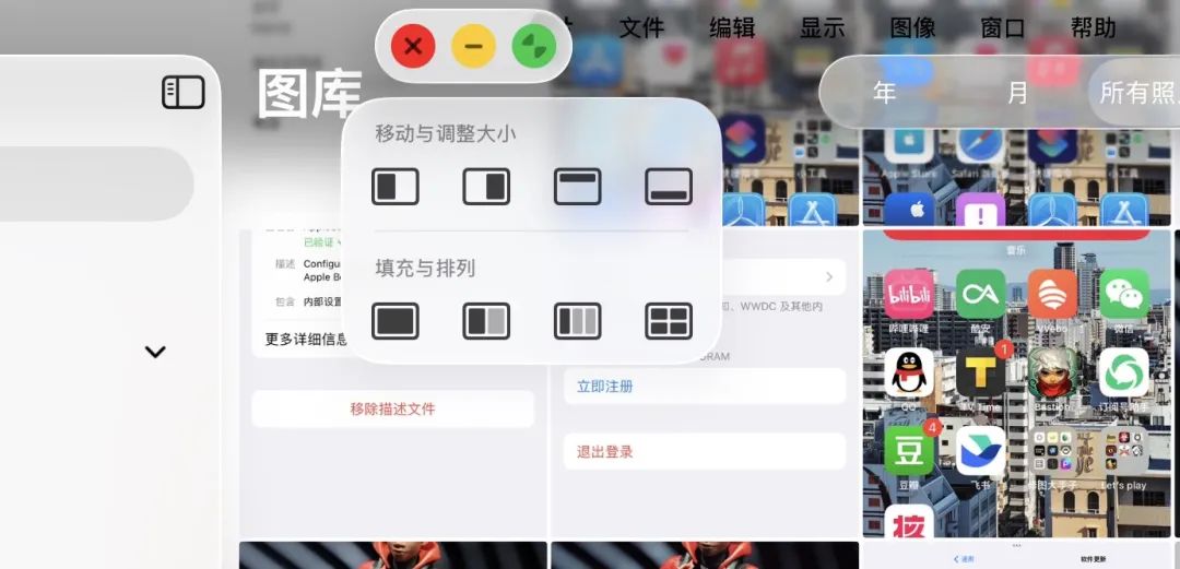 這時長按紅綠燈,它還會彈出一個調整窗口的選項,可以快速選擇你喜歡的窗口排列方式,同時排列三個還是四個窗口都看你心情。
