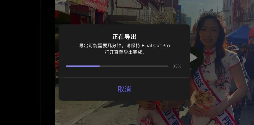 不過我試着導出了一下 Final Cut Pro 自帶的演示視頻,目前依舊是不能離開導出界面的。