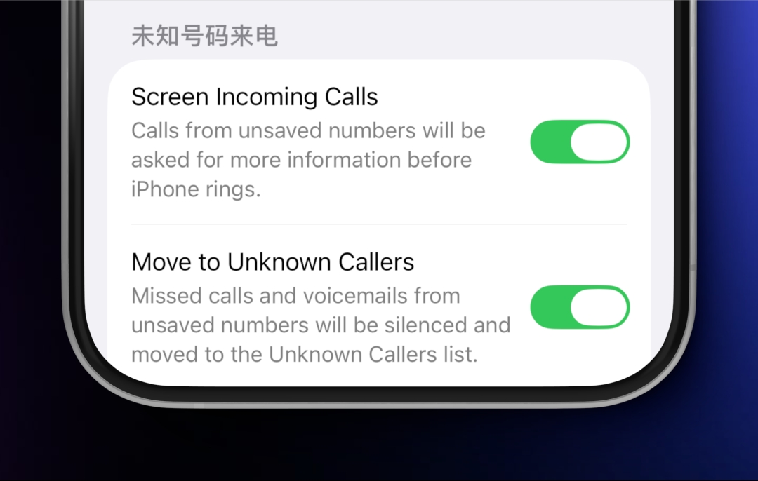 當你打開這個功能後接到陌生電話,這時手機是不會響的。