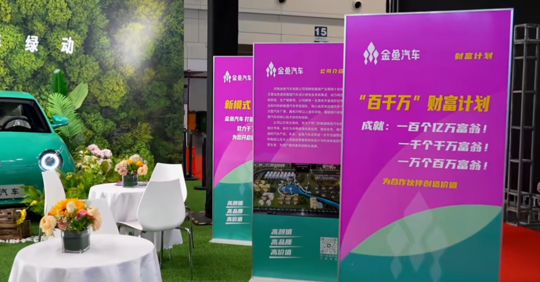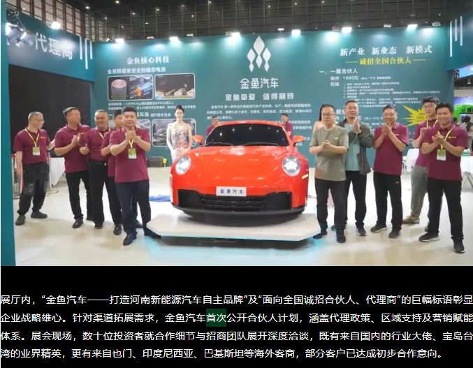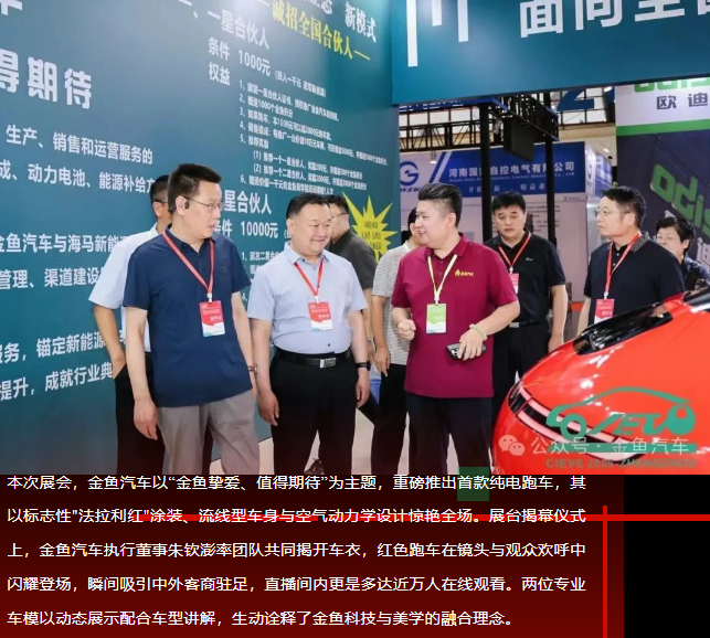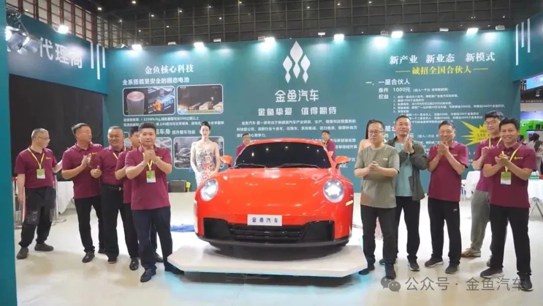 2024 年的河南鄭州國際新能源汽車及充電樁展覽會上,金魚汽車的老闆朱欽彭帶着自家的首款新車:______( 不是填空,這台也沒名字 )亮相了。