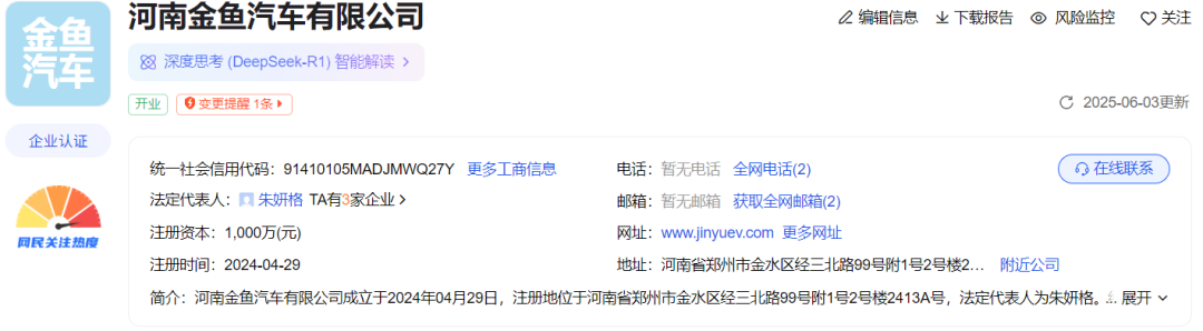 朱總口中已經深耕新能源汽車領域十幾年的金魚汽車,也只是在 2024 年才成立的新企業。