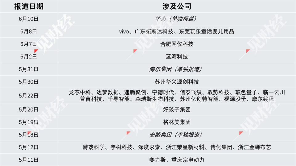 不過,和上述三家企業相比,這20多家民企都是分批出現在不同主題的報道中,而不是被專門報道。