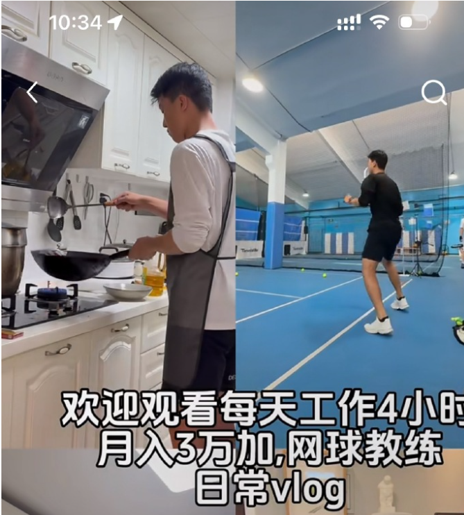 今天刷到個網球教練的vlog,説他每天工作4小時,月入三萬多塊錢。