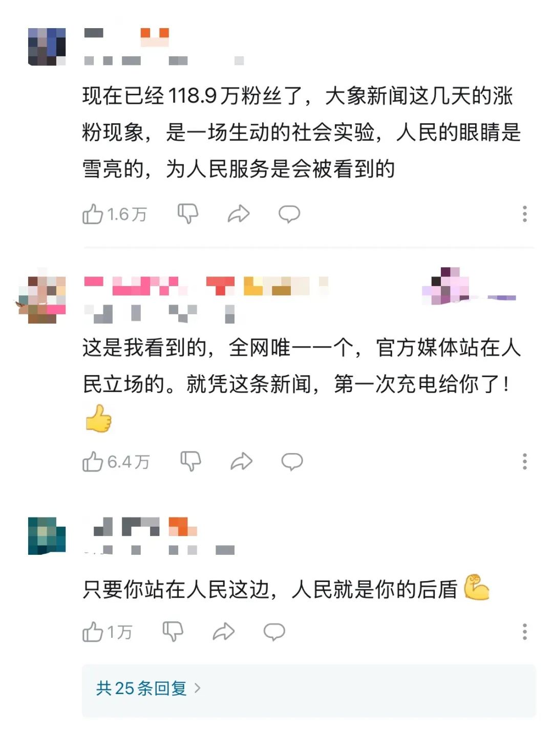 不過,不同於四川觀察的蒐集、記錄屬性,大象新聞增添了一重觀點屬性,在絕大部分短視頻新聞中加入了簡短的觀點評述。並且,大象新聞之所以能在短時間內實現快速漲粉,是因為其選題和評述大多都是站在民眾一側,精準捕捉到公眾情緒。比如在評價黃楊鈿甜事件時,大象新聞的主播提到,“公眾的質疑不是無端的揣測,而是基於信息不對稱的合理推測”,把公眾行為總是擺在值得讚譽的位置上。