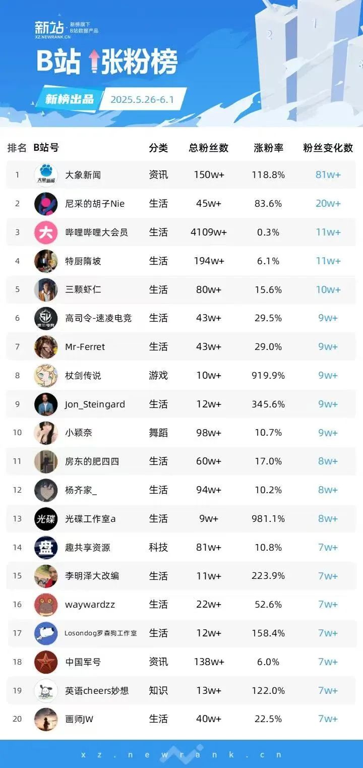B站迎來新“網紅”,河南廣電APP的官方賬號@大象新聞在上週躍居B站漲粉榜首位,漲粉率達到118.75%,目前粉絲數已經超過165萬。在不少網友的眼中,大象新聞是“為人民發聲”的好媒體。