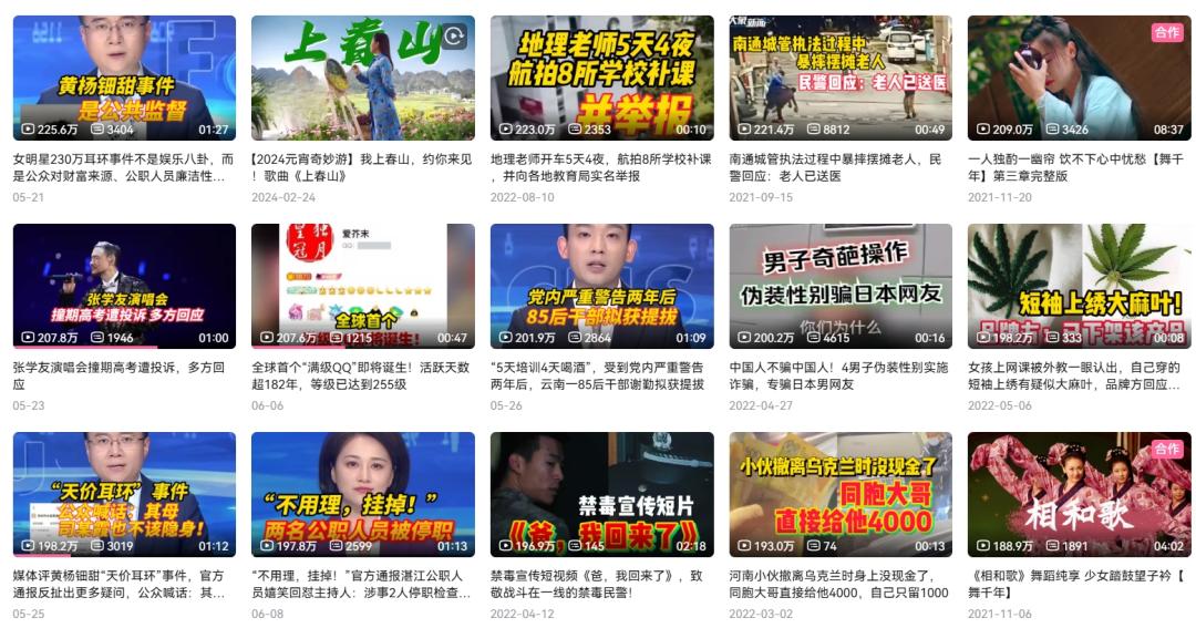 大象新聞的賬號不僅日更多條視頻,保證了內容的時效性,在大眾關心的事件上也做到了不缺位。在黃楊鈿甜的“天價耳環”事件引起輿論關注後,大象新聞自5月20日開始接連發布了16條視頻進行追蹤報道,包含進展彙報、質疑追問、評述等不同內容。而這也成為了它在五月的最後一週高速漲粉的肇因。