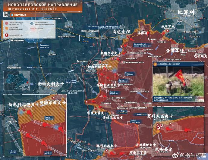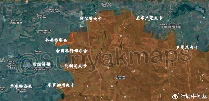 5、紅軍村:俄軍奪取了第聶伯羅彼得羅夫斯克州和頓涅茨克州邊界的新陣地,還在博赫達尼夫卡西南取得了新進展。另一方面,烏克蘭軍隊開始從新米科拉耶夫卡撤退。
