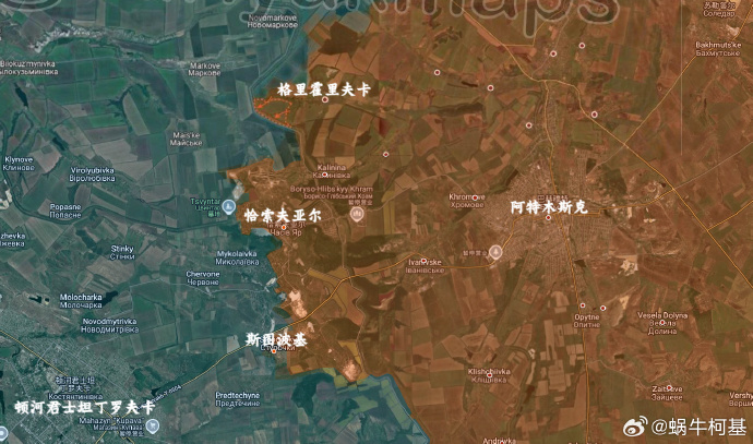 2、恰索夫亞爾:俄軍控制了格里霍里夫卡西南及頓巴斯水渠附近的一系列戰壕。