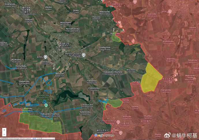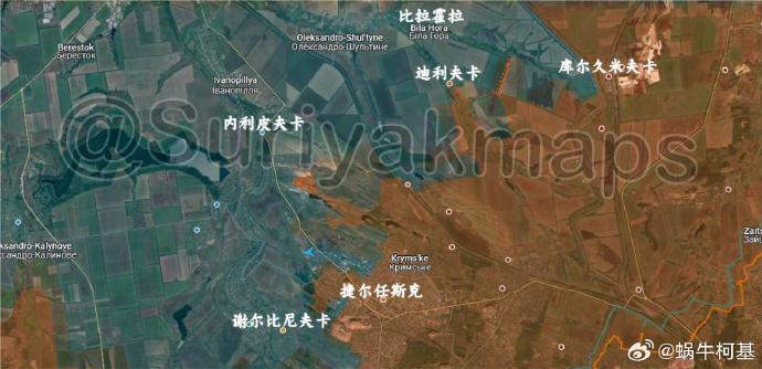 3、捷爾任斯克:俄軍繼續沿新捷爾任斯克礦井東北方向的廢料堆推進,並控制了一系列戰壕,還在迪利夫卡以東再次取得進展。此外,烏克蘭軍隊開始從捷爾任斯克的福米哈區撤退。捷爾任斯克戰役可能在本月結束,未來幾天可能會看到這條戰線發生重大變化……(對,因為之前摳摳搜搜的沒畫,現在只能一次性補了)
