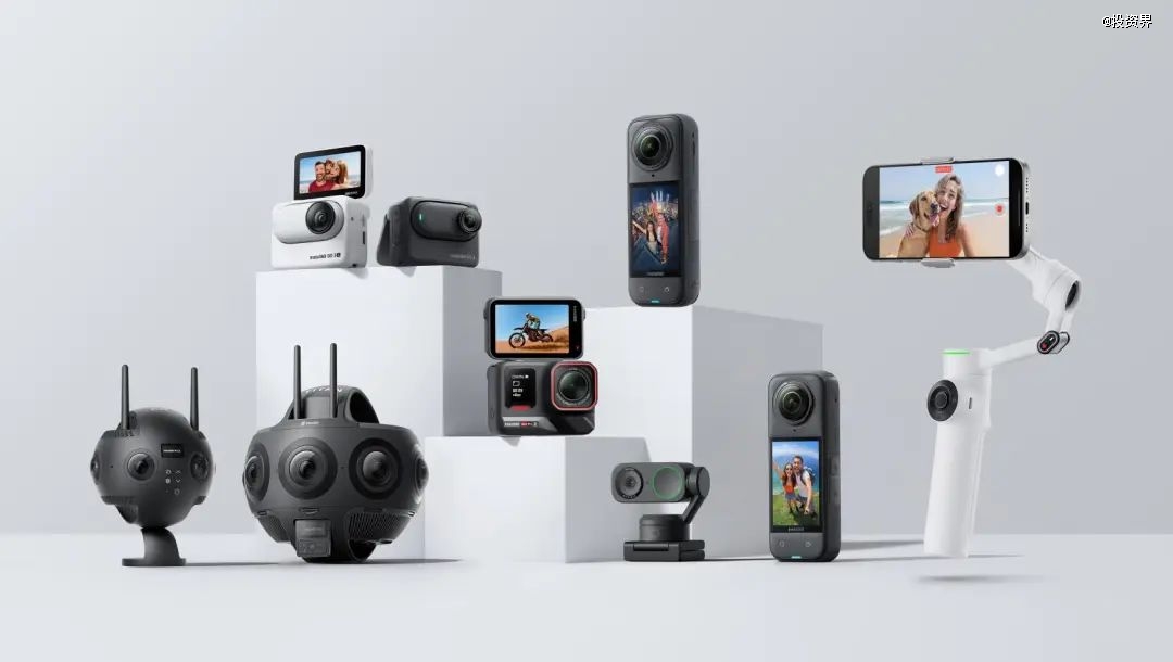 此後,影石保持着半年到一年的上新節奏。迄今公司產品線覆蓋全景相機、專業級VR全景相機、運動相機、手持攝影設備、視頻會議相機,包括X系列、GO系列、Ace Pro系列、Flow系列、Link系列等,產品迭代神速。
