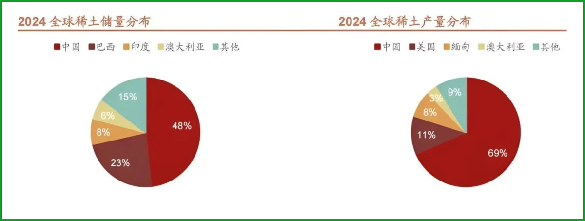 根據美國地質調查局(USGS)的最新數據,2024年中國稀土儲量為4400萬噸,佔全球近49%,當年產量27萬噸,佔全球的69.2%。中國,控制着全球超過90%的稀土精煉產能,以及超過90%的釹鐵硼永磁體供應。這些釹鐵硼永磁體正是電動汽車驅動電機的核心部件。
