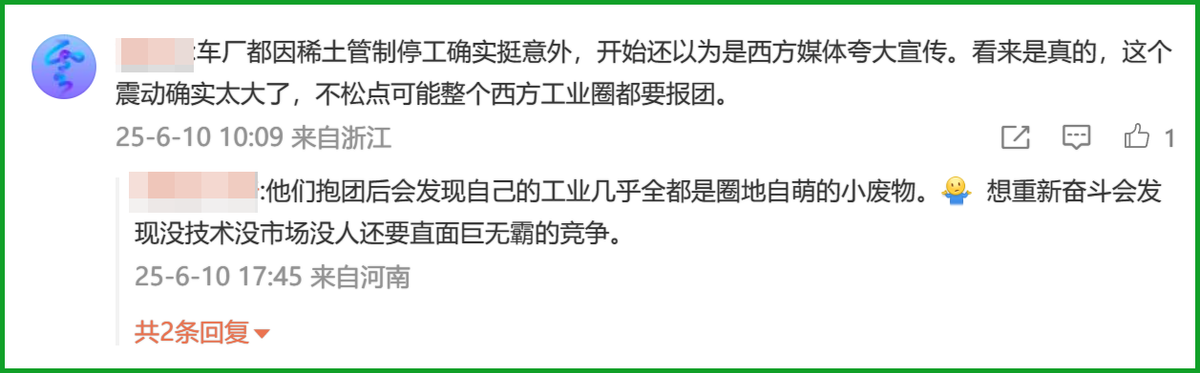 稀土是“工業維生素”。4月的7類中重稀土出口管制實施後,歐、美、日、印的車企紛紛傻眼,稀土庫存告急,生產線面臨停擺。甚至有海外專家提議:乾脆,還是把生產線搬到中國去吧。