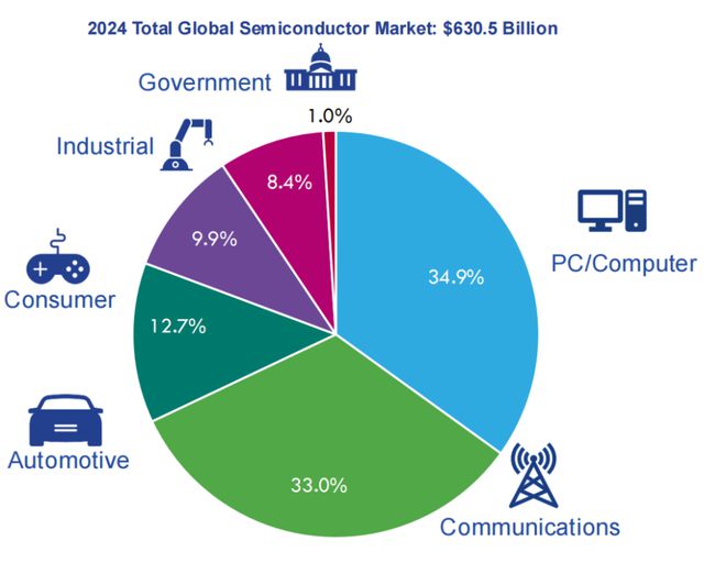 隨着半導體行業為終端應用行業開發更先進的產品和工藝技術,半導體技術已迅速發展。近年來,全球半導體行業的最大細分領域為邏輯芯片、存儲器、模擬芯片和微處理器。2024 年,這些產品佔半導體行業銷售額的近 80%。