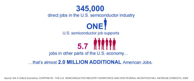 美國半導體行業直接為美國創造了25 萬個就業崗位,並額外間接創造了 100 多萬個美國就業崗位。