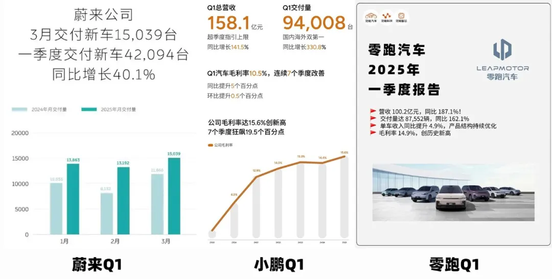 圖/2025年Q1蔚來--小鵬--零跑銷量