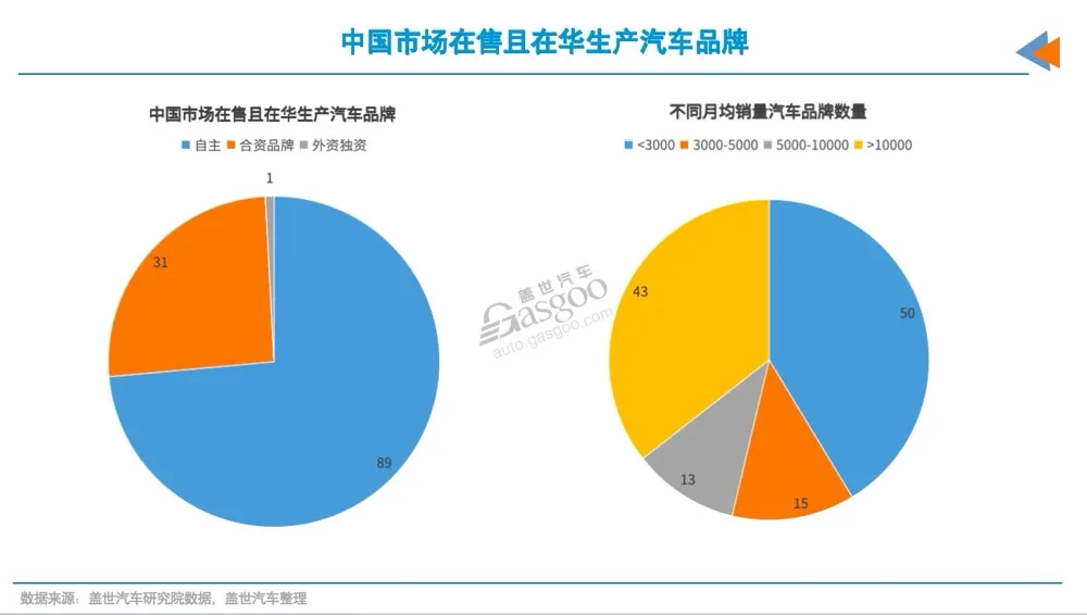 蓋世汽車研究院統計數據顯示,截至去年年底,中國汽車市場現有121個在售且本土生產的品牌,市場集中度持續下降。