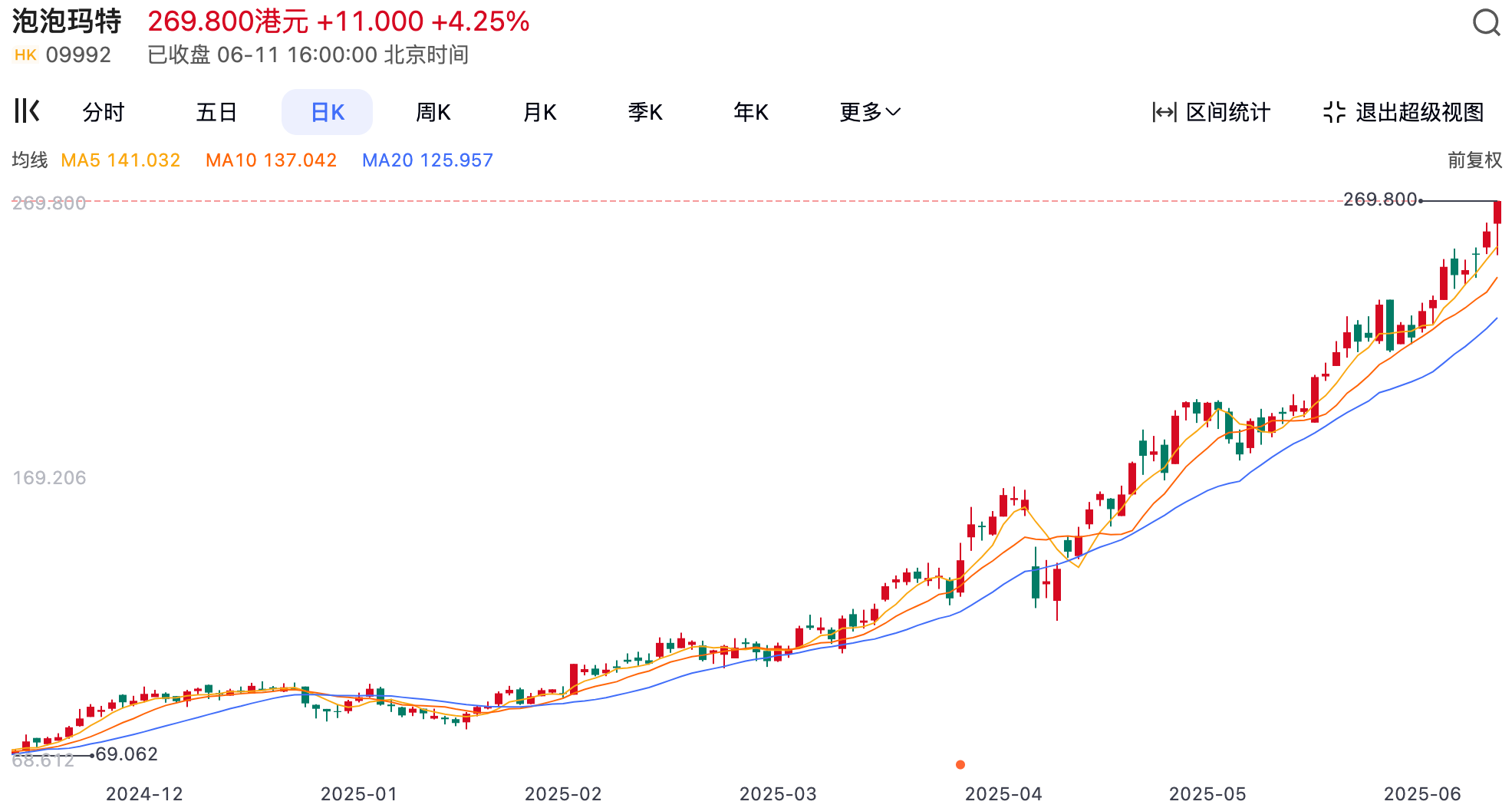 泡泡瑪特股價