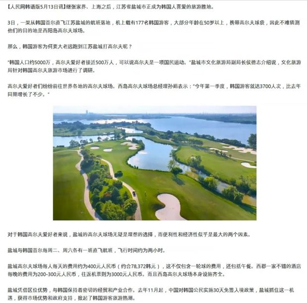 不少人將韓國人蜂擁而至的原因單純歸結為便宜,便宜固然重要,最重要的還是性價比,也就是韓國人來鹽城的旅行體驗。