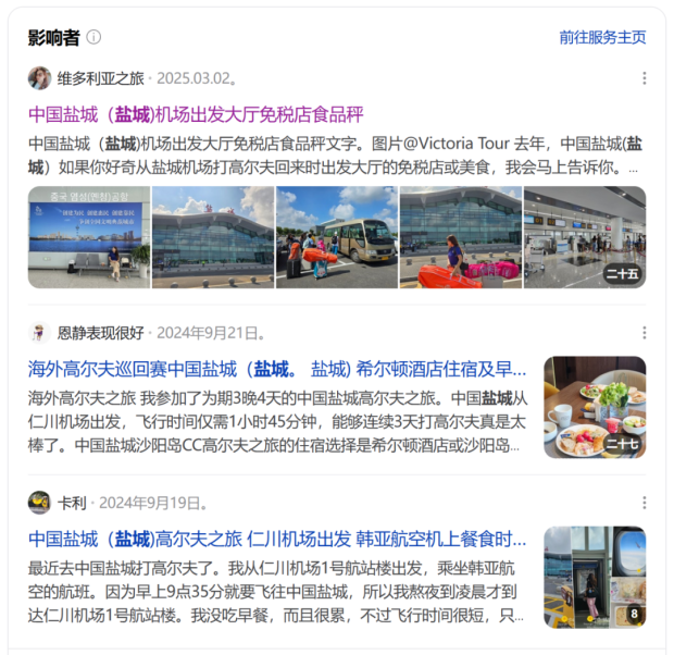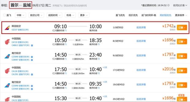 從首爾到鹽城,每週有兩個航班,每次只需要兩個小時即可到達,這對韓國人來説,也許比去韓國國內的一些地方還要方便便宜。