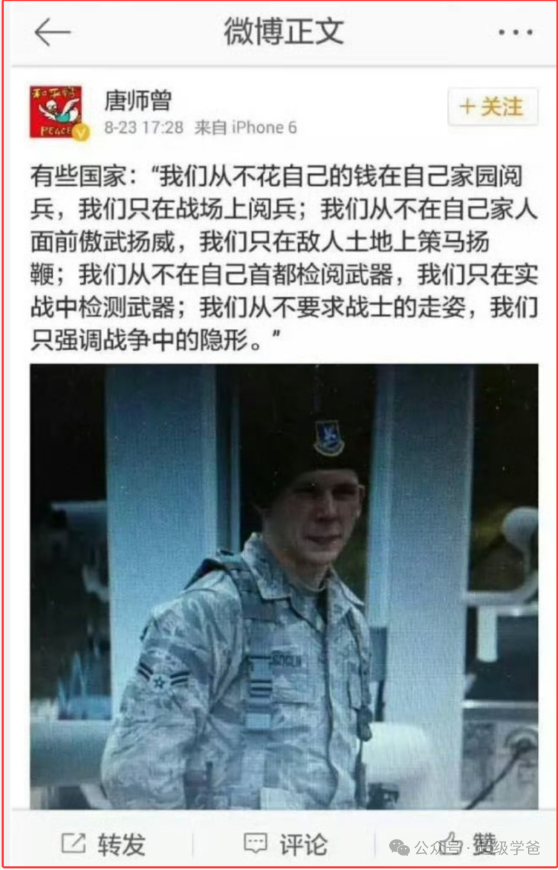 以前公知説,文明國家比如美國從來都不搞閲兵,只有落後和弱小國家才會閲兵(或者:皿煮國家不閲兵,閲兵是磚制象徵),現在迴旋鏢終於來了。