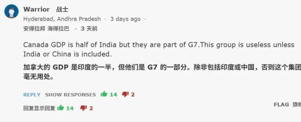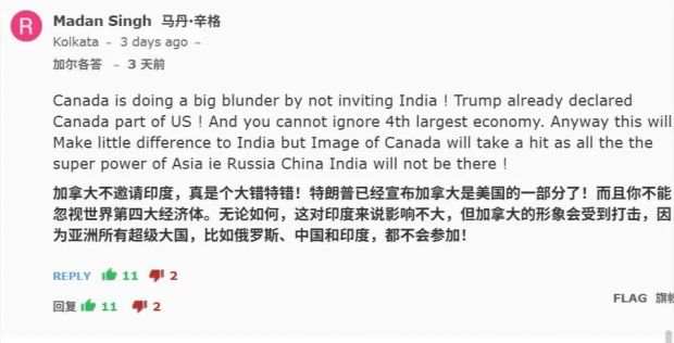 在《印度時報》的評論區裏,這羣印度網民各種撒潑打滾:有説莫迪去不了G7峯會,損失的不是印度而是加拿大的;有説印度已經貴為世界第4大經濟強國,就算G7請了也不該去的;還有説印度應該趁此機會和西方世界徹底劃清界限,申請加入聯合國安理會常任理事國的。總之,為了宣泄因為無能而產生的怒氣,這幫印度人簡直什麼奇談怪論都能給你掰扯出來: