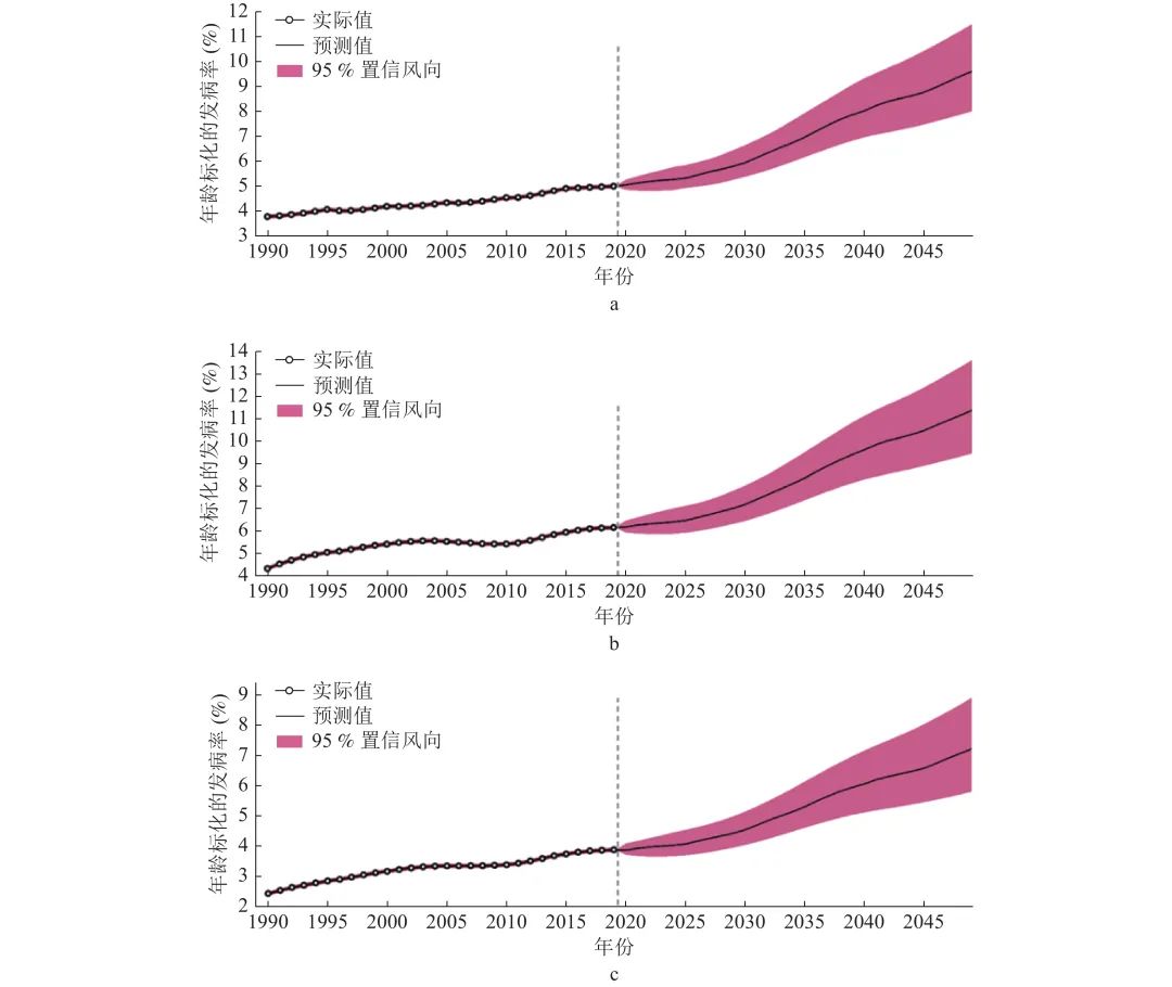 中國55~94歲老年人老年痴呆症發病率預測。圖片來源:中國公共衞生