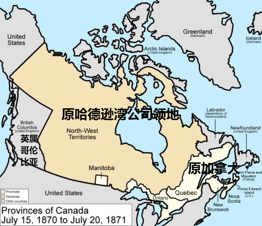1869年,英國將哈德遜灣公司的領地併入加拿大自治領