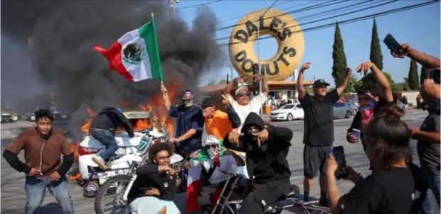 有人説,加州是民主黨大本營,非法移民是民主黨的票倉,所以這些人是被民主黨煽動,給懂王上眼藥……然而事實是,這個局面其實是各方一起搞出來搞出來的。因為是他要驅逐非法移民,洛杉磯一開始只有少數幾個人“逛街”,結果懂王非要顯示他的“強硬”,又是國民警衞隊上街,又是直升機空投彈藥,那麼“非法移民”也不能坐以待斃,於是開始手搓燃燒瓶、投石器,把冰箱和沙發搬到街頭當“街壘”,U型鎖無差別打砸任何一輛路過的汽車,零元購們瘋狂衝擊店鋪、乘火打劫……一派勃勃生機萬物競發的景象。