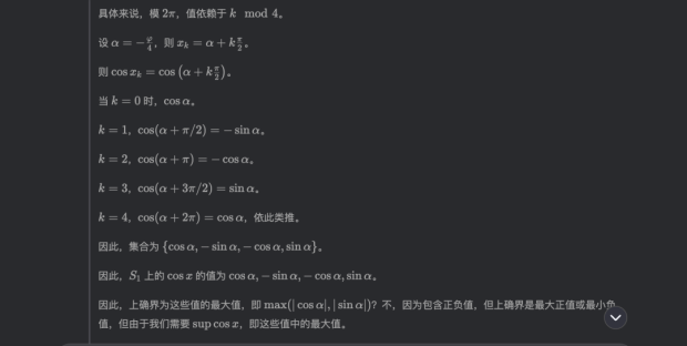 智譜 Z1 結合餘弦函數特性和區間長度,也採用了不同的反證思路。