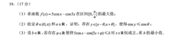 (3)若存在實數 \varphi ,使得對任意實數x,都有5 \cos x- \cos ( 5x+ \varphi ) \leqslant b,求b的最小值.