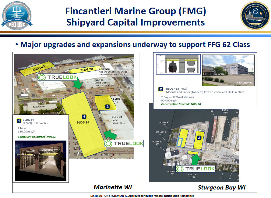 2022年美國海軍海上系統司令部的另一份簡報幻燈片,詳細説明了芬坎蒂尼為支持“星座”級護衞艦生產而擴建實體基礎設施所做的工作。美國海軍