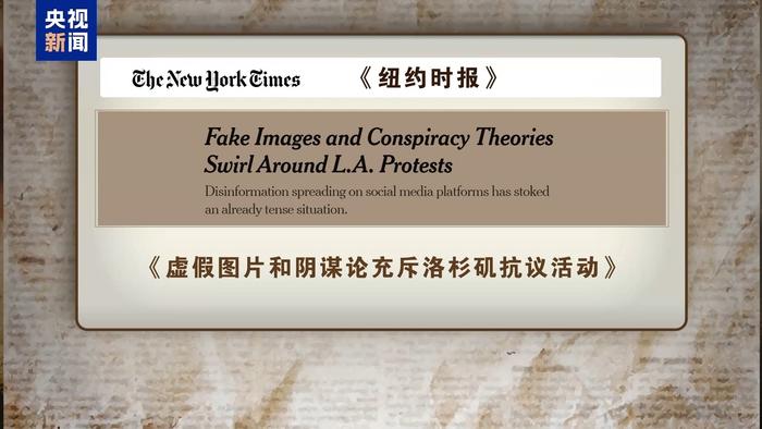 《紐約時報》10日同樣刊文指出,隨着針對抓捕非法移民行動的抗議活動在洛杉磯展開,誤導性的照片、視頻和文字在社交媒體上廣泛傳播。