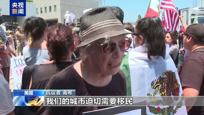 抗議者 南希:我們的城市迫切需要移民,我們剛剛經歷了毀滅性山火,失去了1.4萬棟建築。而回頭看看這座城市的建設者,正是移民羣體。因此,針對移民的攻擊讓所有洛杉磯市民感到痛心。這毫無道理可言,他們絕大多數都是安分守己的。