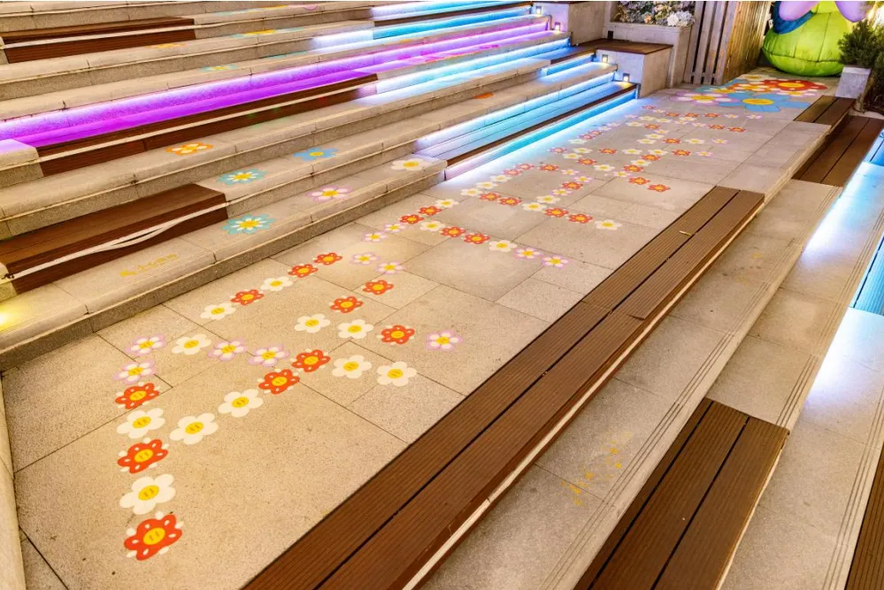 【‘階’住此刻美好】行至開闊平台,主題化為珍惜。觀眾行走其上,每一步都可能引發花瓣飄落軌跡的奇妙變化,如同與時間共舞。這裏鼓勵人們放慢腳步,#果(過)期不候——提醒美好稍縱即逝,務必用心拾取與珍藏。